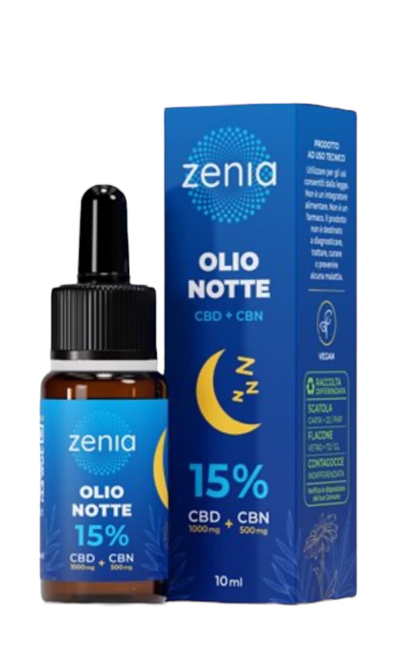 Lo Zenia Olio 15% è un integratore naturale a base di CBD (Cannabidiolo) e CBN (Cannabinolo), due fitocomposti derivati dalla pianta di canapa, noti per i loro molteplici benefici sul benessere fisico e mentale. Con una concentrazione totale del 15% (1000 mg di CBD e 500 mg di CBN), questo olio è stato progettato per offrire un’azione combinata, ideale per supportare il rilassamento, il sonno e il recupero.